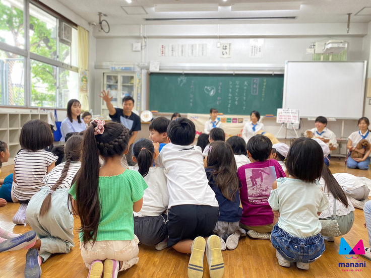 私たち一般社団法人マナーニは2014年より、「こども笑顔のラインプロジェクト」という活動名で、文部科学省や環境省後援のもと、全国の小学校を対象に「犬を介在した授業」を実施してきました。現在まで全国114校、253クラス、7,761人の子どもたちに授業を行ってきました (2023.12.25現在)。