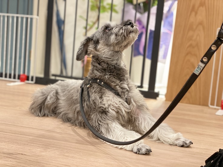 授業では、子どもたちが触れ、そして体のさまざまなところを見て触って観察し、一緒に遊ぶので、そういった授業に必要なスキルを飼い主さんと共に学んでいます。