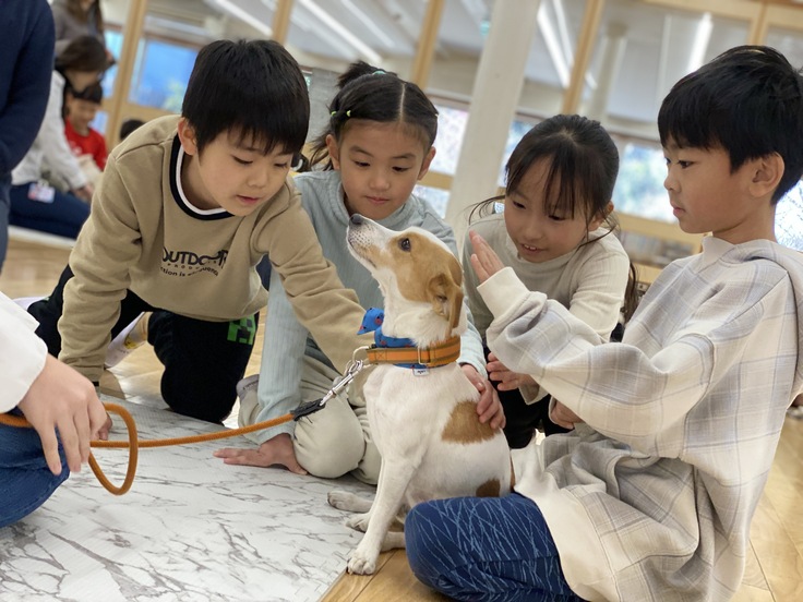「授業前は犬を怖がっていましたが、授業で犬とふれ合い怖さがなくなり可愛かったと話していました。人間以外にも命があり、生き物を飼うということは「育てる」という必要があるということを家でも話す機会になり学びがありました」