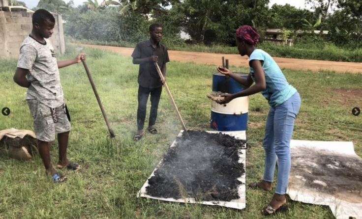 In addition, to support the livelihoods of the fishermen who are unable to fish, we are also promoting the production of eco-charcoal for sale in the town by carbonizing the removed Salvinia.