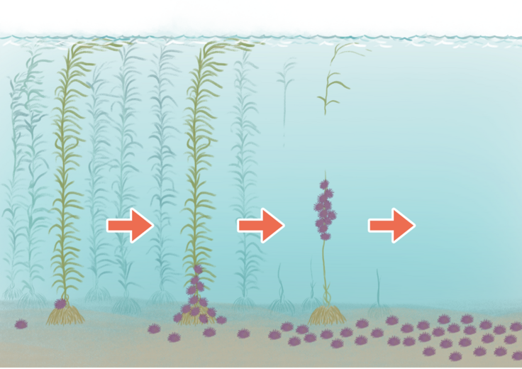 ラッコがいなくなった海では、食べていたウニの数が増えすぎてしまいました。