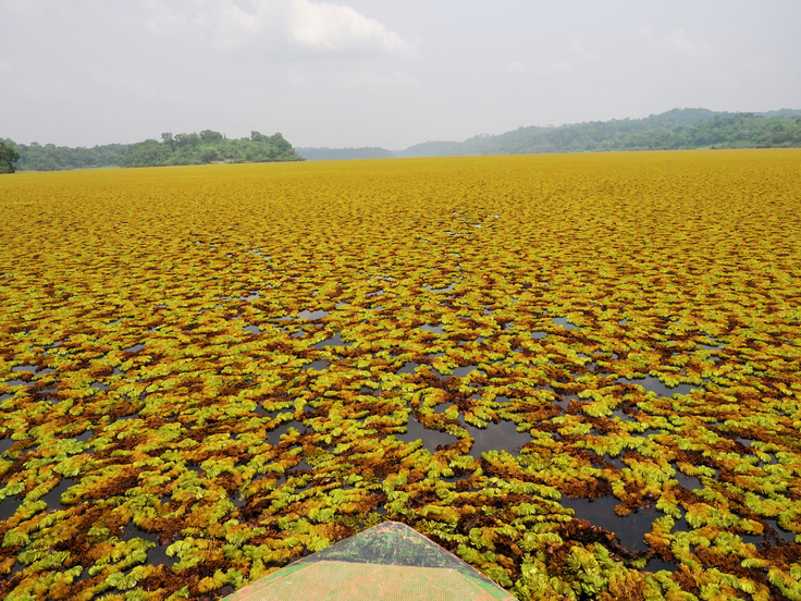 私たちは、現地のNGO団体 AMMCO と協力し、カメルーンの オッサ湖 に大量発生した外来種 オオサンショウモ の駆除を進めています。