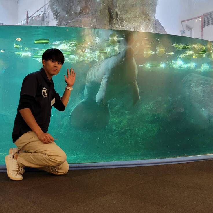 新屋島水族館でマナティー担当となり,実際に近くでマナティ達と触れ合うことで,より魅力に気付かされました.マナティーは人懐っこく,可愛らしい見た目などから私たちに癒しをくれる生き物だと私は感じています.そんなマナティーの生息数減少を受け,調査,保全活動,環境教育などを行い,魅力を少しでも多くの方に発信してくれる貴重な団体かと思います.水族館では,伝えきれない現地の自然環境,野生下のマナティーの様子を伝えられる数少ない存在かとも思います.現地に行ったからこそ分かるものを今後も多くの人に発信して頂きたいと思っています.可愛いだけではない,魅力いっぱいのマナティーのため,ご協力をお願い致します.