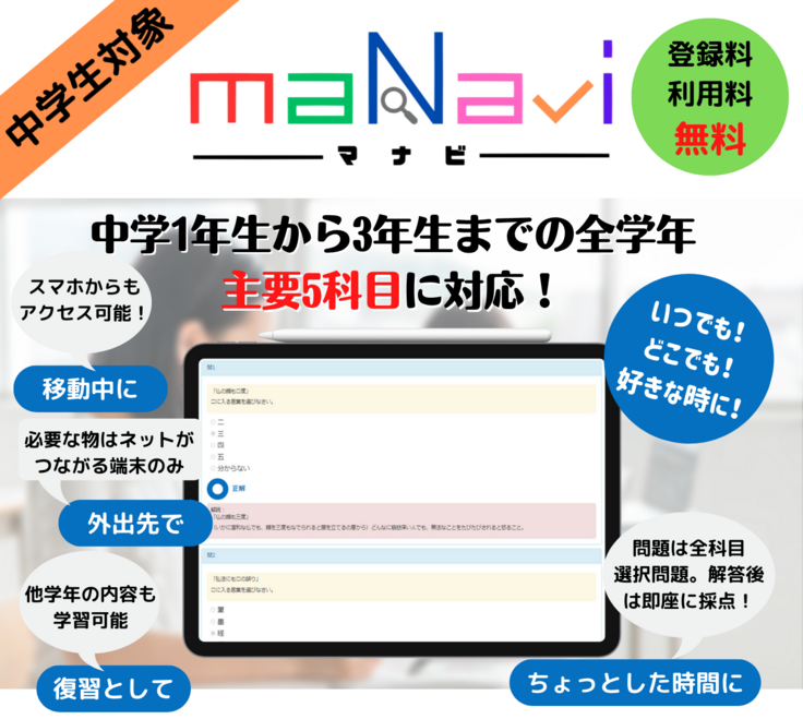 そんな活動の中で誕生したのが、オンライン学習システム maNavi(マナビ) です。