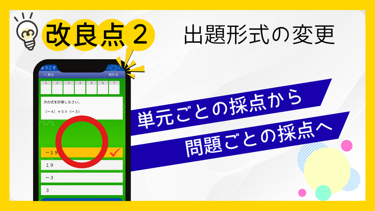 そこで、今回のアップデートで採点方法を単元ごとから問題ごとに変更し、間違いにすぐに気づける仕様にします。