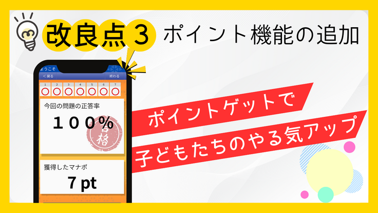 このポイント機能では、正解した問題数だけポイントが貯まります。