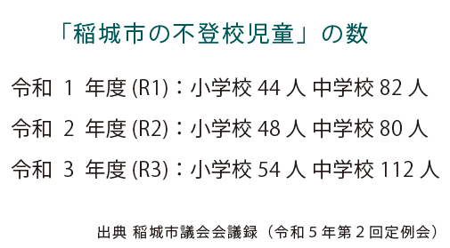 もうひとつ、大きな課題があります。それは、不登校児童への民間支援の中心である「フリースクール」が市内にはひとつも存在しない(2024年3月 稲城市教育委員会HP https://www.city.inagi.tokyo.jp/smph/kosodate/gakko_kyoiku/freeschool.html)ことです。フリースクールを利用する場合には、近隣自治体まで通わなければいけません。フリースクールの利用は「月額2万円」まで授業料が助成がされるようになっています。しかし、その選択肢が稲城市には存在しません。