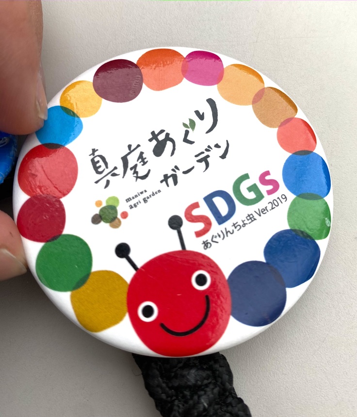 NPOが開催するSDGsのイベントなどで販売している(あぐりガーデンでも販売しています)このバッジにも書かれているマスコット的なキャラクターです。