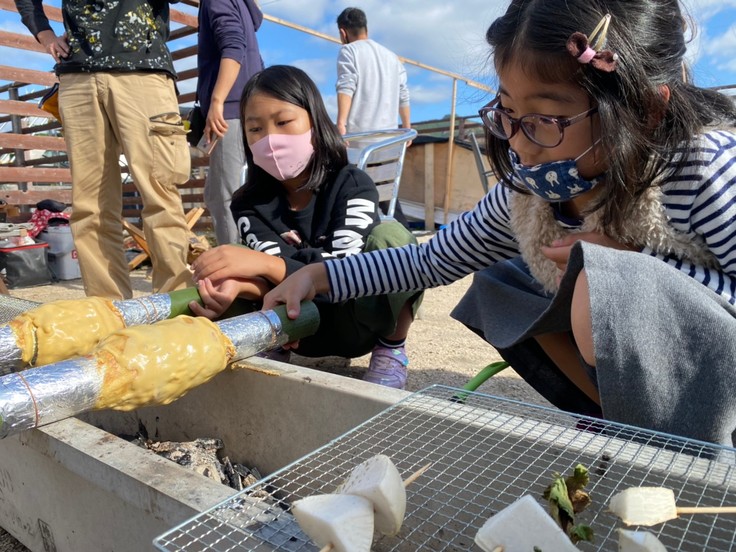 途中の休憩時間には、手作りのバームクーヘンにも挑戦!