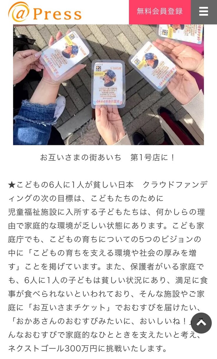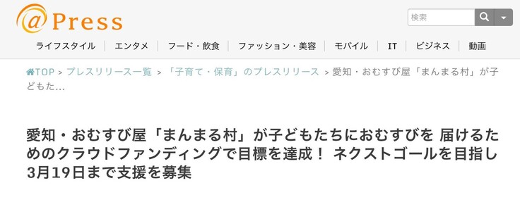 この度、合同会社マザーフッドの「まんまる村」クラウドファンディングへの取り組みを@Press様に掲載いただきました。