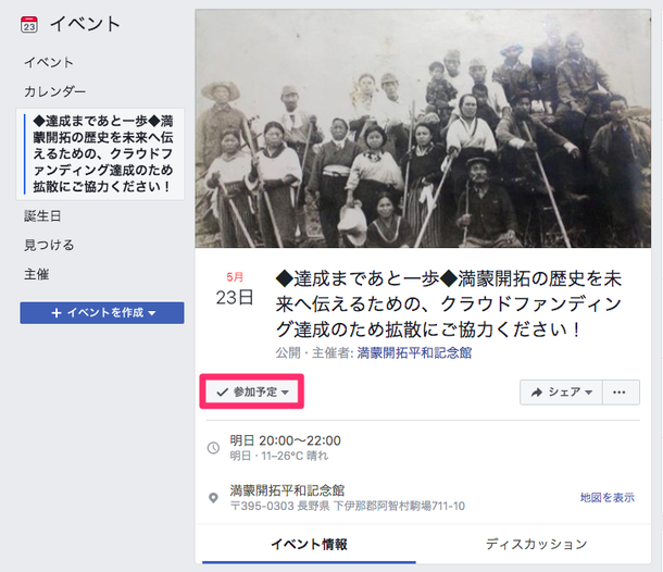 ③イベントページ内で、「シェアしました!」と投稿してください。