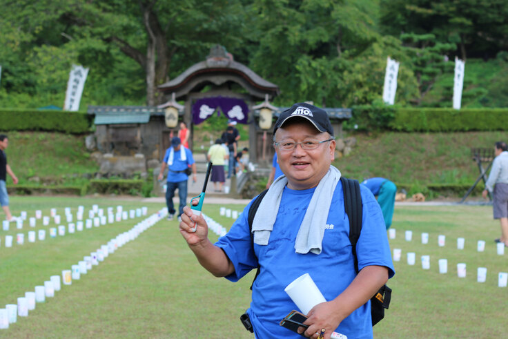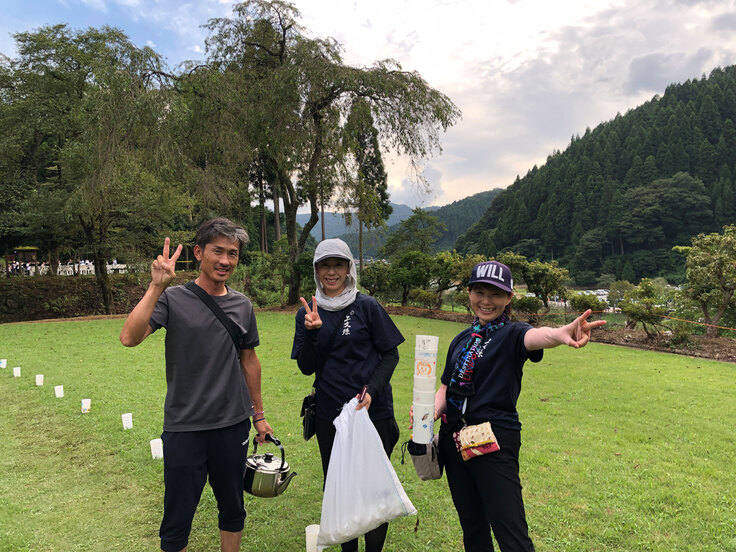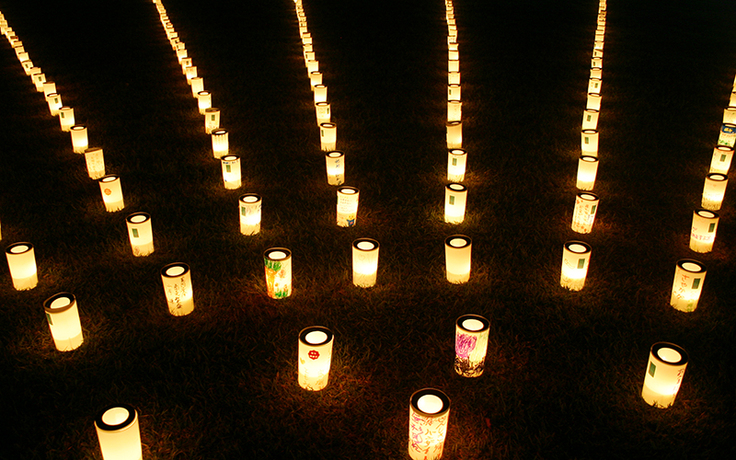 全国から募ってくれたボランティアスタッフの人たちへ「感謝と復興のライトアップ」ということではじまった越前朝倉万灯夜は、今年で20回目とこちらも節目の年になります。今では皆さんの、思いや夢、そして願いをカップに込めて灯りをともしております。