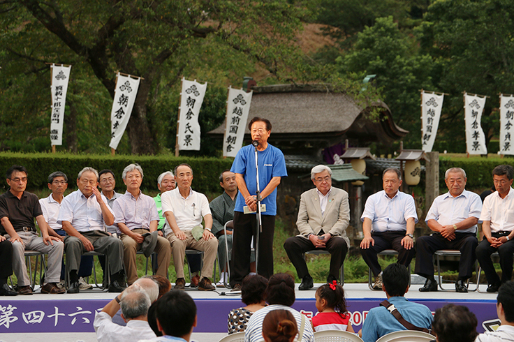 会場となる一乗谷朝倉氏遺跡は、1573年(天正元年)に、一乗谷が焼かれ、朝倉義景が自刃したことで戦国大名としての勢力は終焉を迎えました。それから450年の時が流れ、今年はその節目の年を迎えています。現在、朝倉氏の遺産は、新たな希望として地域の発展や活性化に繋がり、未来への架け橋となっています。