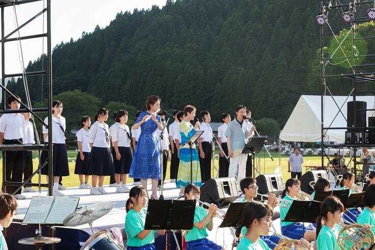 8月19日、歴史的な一乗谷朝倉氏遺跡にて、福井市の心温まる歌“わたしのまち ときめきのまち”を歌うダ・カーポのミニコンサートを開催いたしました。この特別な日に、福井市足羽第一中学校のブラスバンド部・合唱部と共演させていただき、そのコラボレーションの音楽は心に響くものでした。