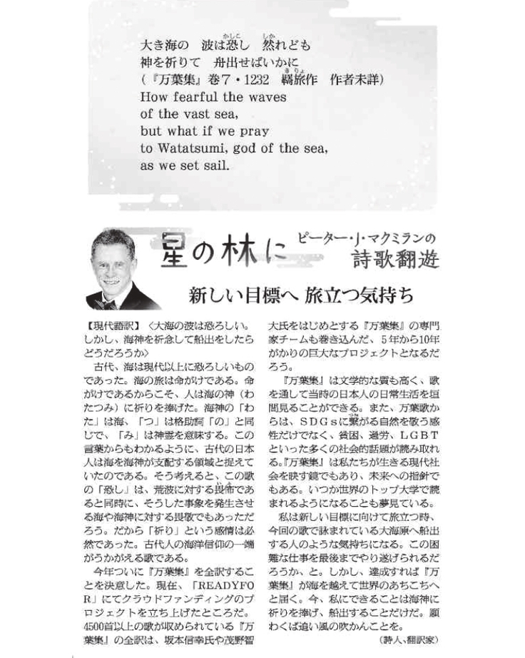 朝日新聞連載「星の林に」:ピーター・J・マクミランによる『万葉集』の翻訳掲載