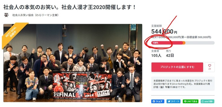 10月12日に開始した今回のクラウドファンディング。最初はとても不安でした。「本当に支援が集まるだろうか?」「”社会人のお笑い”は受け入れられるだろうか?」「支援者の方々にとって魅力的なリターンになっているだろうか?」そんな考えが頭をグルグル巡っていました。