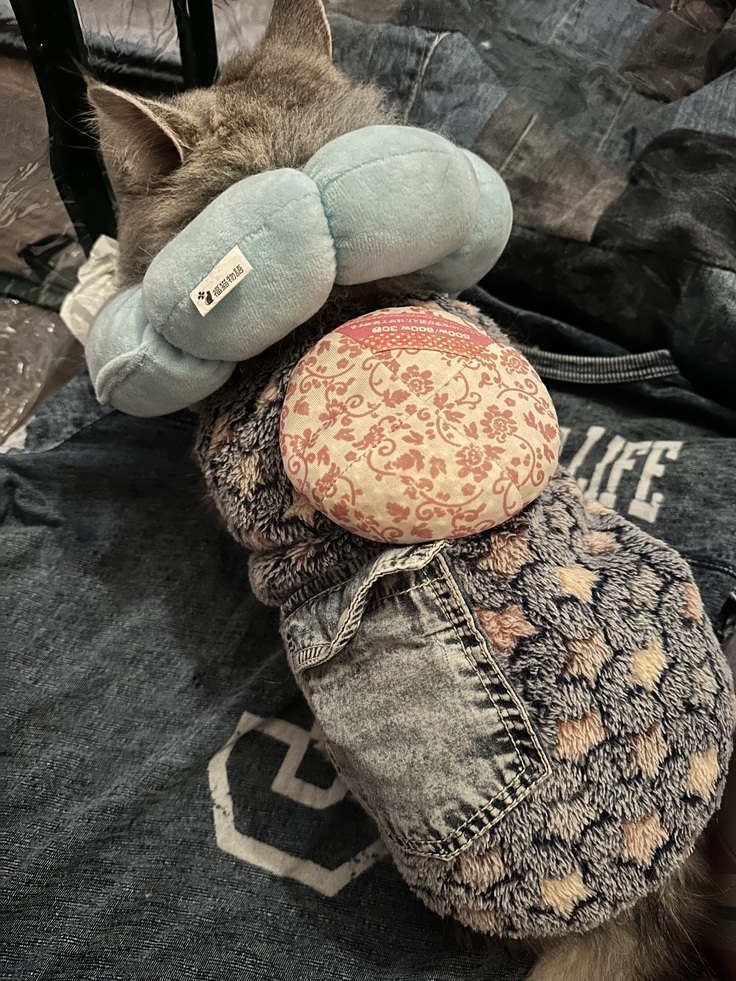 🔴お腹が張ってるので、レンジで温めて使うポカポカで温めてあげてます🐱
