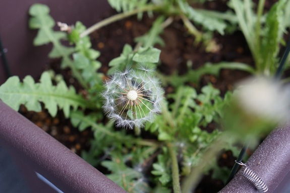 シロバナタンポポはすでに花が咲き、綿毛になっています。