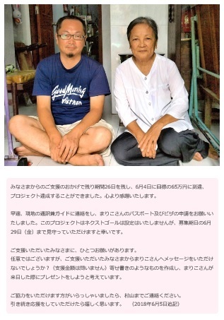 みなさまからのご支援のおかげで残り期間26日を残し、6月4日
