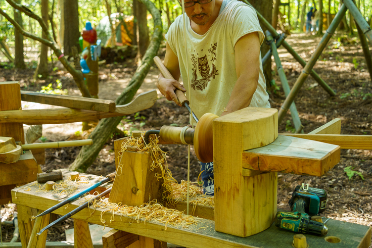 そんなキッコリータウンでキャプテンは日々、森から生まれる間伐材からスプーンやお皿といった雑器を生み出しています。