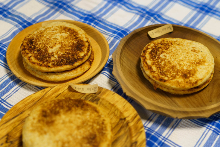 生産のギリギリまで、充麦の小麦の配合具合を調整したり、レシピに掲載するために豆乳の量を調整しながら何度も試食を重ねてきました。