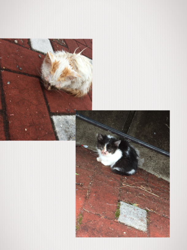 先日名古屋へ行った際、水族館の外に出たら死にそうな仔猫が2匹…。