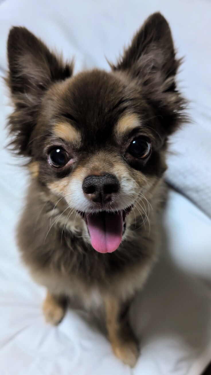 チワワのような丸みを帯びた形ではなく、鼻はスッと通っておりどちらかと言うとイケメンな顔をしています。わがまま甘え上手で、色々と振り回されることはありますが、我が家で宝物のような存在になっています。
