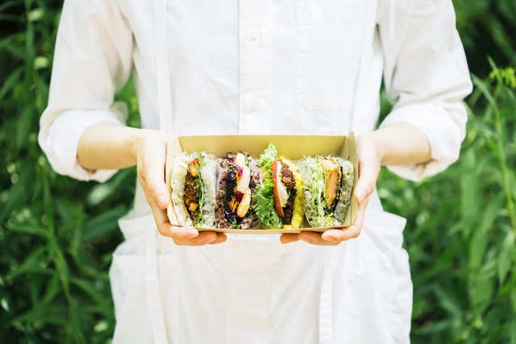 Agtは自社製造の惣菜も販売しており、惣菜のメイン商品は自然栽培のお米で作ったお米のサンドウィッチ「こめサン®」という、パンのサンドウィッチのように断面が映えるお米のファストフードです。お米を美味しく楽しくおしゃれに食べていただきたい、そして、食べた方々の身体がより健やかであっていただける商品づくりを大切にしています。