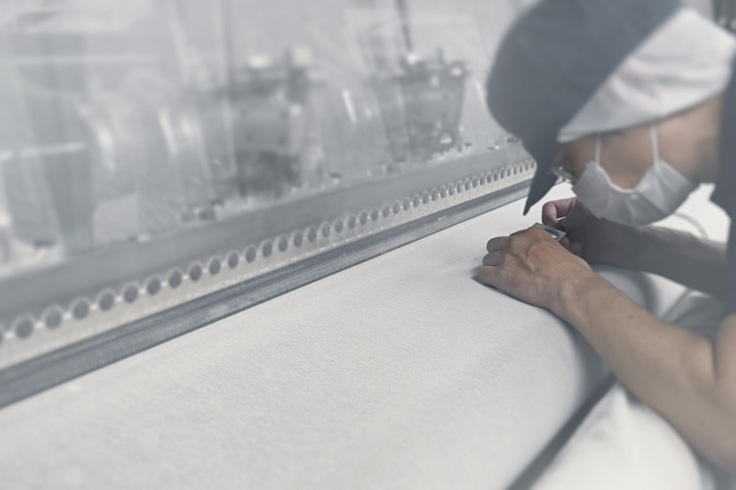 シルクを編み込む技術で、小口径人工血管の製造技術の開発に成功いたしました。それらの取組みに感化され、もっと身近で日常の悩みを解消できる インナーを作りたい!と、素材の開発がスタート。