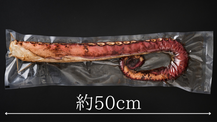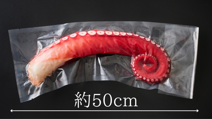 インパクトのある、活タコの足を二本セットにした贅沢な商品です。大切な人への贈り物やホームパーティー用のお持たせなど、ご活用ください。