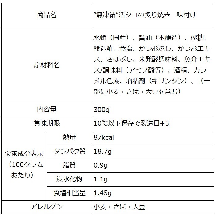 ■”無凍結” 活タコの炙り焼き 味付け