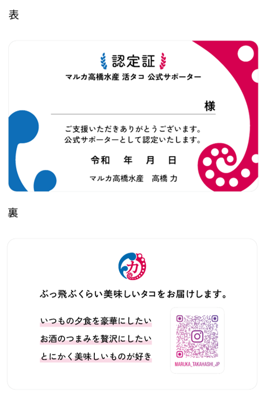 弊社が独自に発行する、公式サポーターを認定するカードで大きさは名刺と同じくらいです。