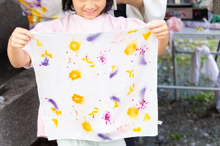 会場ではワークショップもたくさん用意し様々な体験を行いました!!こちらは「バンダルダイでハンカチを染めよう」この日は母の日だったので、子どもがお母さんの為にプレゼントしたりしてましたよ~!!