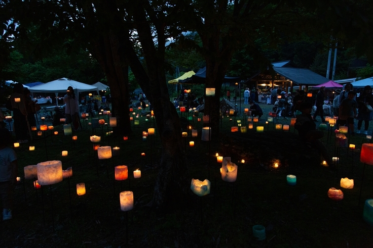 このイベントは活性化協議会のメンバーが中心となり開催しているイベントで、お昼間は、自然の中でワークショップやアウトドア体験を行ったり、おいしい飲食やかわいい雑貨などの販売を行い、夜は協議会メンバーでもあるmowcandleさんによるキャンドルのライトアップで大自然を照らします。