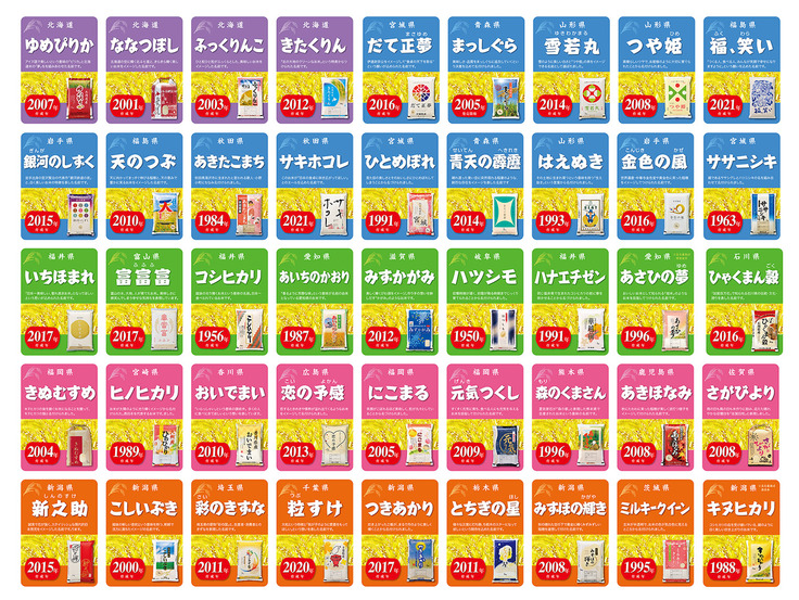 南北に長く平地と山間部の高低差が大きい日本は気候や環境の差も大きく、同じ種類のお米を同じように育てることはできないため、古くから地域の自然環境や気候に合わせたお米が作られてきました。また、近年では食の多様化に合わせた料理と相性のいいお米や、地球温暖化に対応した高温に強いお米など新しい品種が続々と開発されており、その数は900種類を越えると言われています。(2022年産の水稲うるち玄米の産地品種銘柄数)