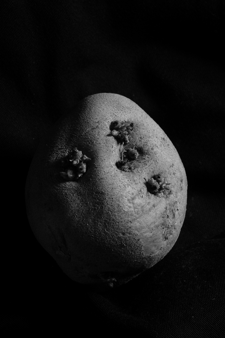 そんなある日、散歩から戻り、夕方 夕飯の仕込みをキッチンでしていました。野菜庫の中のジャガイモと玉ねぎを探していました。するとジャガイモは見つかったのですが、芽が生えてしまっていました。包丁で1つづつ芽を取るしかないなとあきらめていた時…。ちょうどわが家のキッチンは西陽が射しこみます。西陽が丁度 ジャガイモにあたったところでした。僕の頭の中にあるイメージがよぎりました。??なんだったっけな?あの映像・・・・・。そうぼくの脳裏を横ぎったのはJAXAの探査衛星 はやぶさが撮影した、小惑星の映像でした。ジャガイモ、何か小惑星に似ていない?そう思うと矢もたてもいられなくなり、スタジオにセットを組み、バックに漆黒の布を引き、ジャガイモが小惑星に見えるようにライティングしました。散歩しながらスナップを撮る以上に写欲が掻き立てられました。夢中で撮りました。家でジャガイモと格闘して撮影する時が来るなんて思いもよりませんでした。そして何よりも屋外と違い、人の目を気にしたり、感染対策を気にしたり、さらに言うならば太陽の動きを気にする必要もありません。気がついたら2時間近く撮影していました。