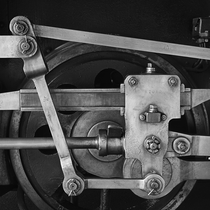 硬さが生きる諧調表現、それはとりもなおさず金属物だった。オブジェになるような、かつ線の美しさと重厚さがあるもの。頭に思い浮かんだのは蒸気機関車。その動輪やパーツの1部を切り取る事だった。僕は京都の鉄道博物館に向かった。多くの蒸気機関車がある中でB20という小型の蒸気機関車を選んだ。