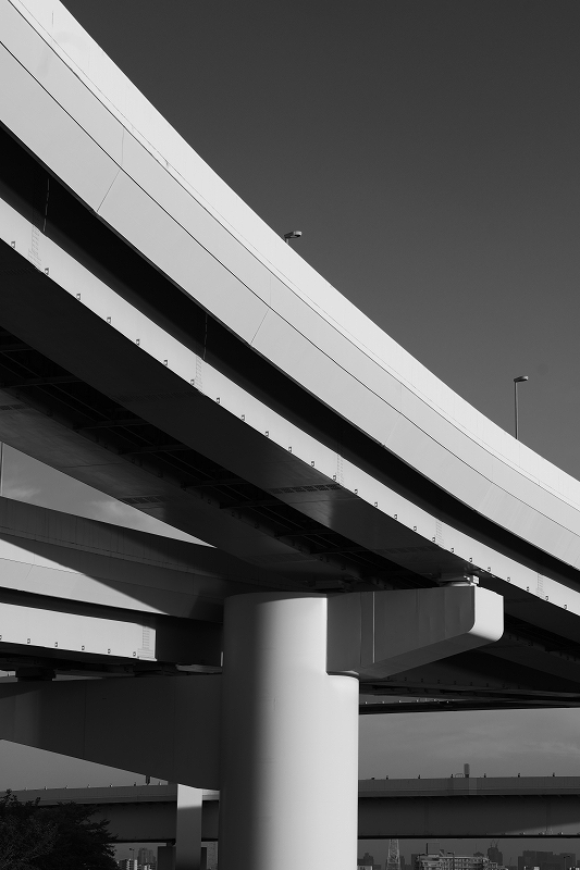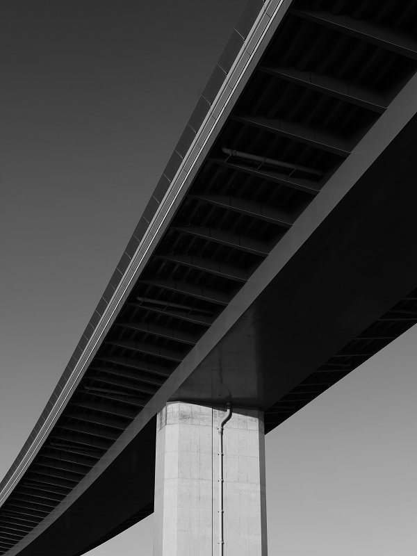 そして東京に住んでいると眼につくのが、都内を縦横無尽に走り回る首都高速や立体交差の道路や橋脚。その中で今回のKATACHIに選んだのが東京ゲートブリッジの橋脚と首都高速江北JCTの橋脚。いずれもコンクリートのソリッドな感じを出すために、快晴でコントラストの強い日を選びました。そのため諧調の幅が広く、印刷でのその諧調を出すのはとても苦労し、印刷をして頂いた東京印書館のスタッフの皆様には大変な努力をして頂きました