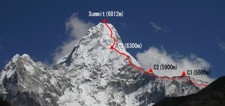 10月にはヒマラヤ山脈で最も美しいと言われているアマダブラム(6,856m)という山に挑戦します。6800mという環境に加えて岩登りやアイスクライミングの技術も必要とされ、期間は1ヶ月ほどになります。