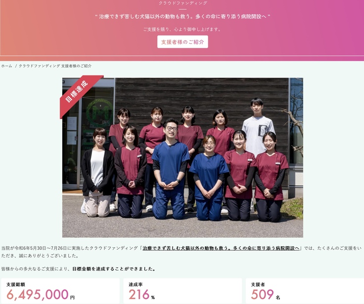 当院のホームページに支援者様のお名前(ご希望制)の掲載が完了いたしましたのでご報告させていただきます。
