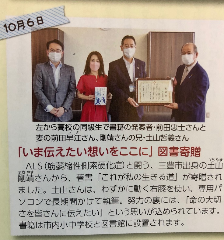 2021年10月6日、丸亀市の市長様を訪問させて頂き、本を御寄贈させて頂きました。丸亀の広報誌にも掲載して頂きました。これらも全てお力添え頂きました皆様のお陰と改めて感謝申し上げます。
