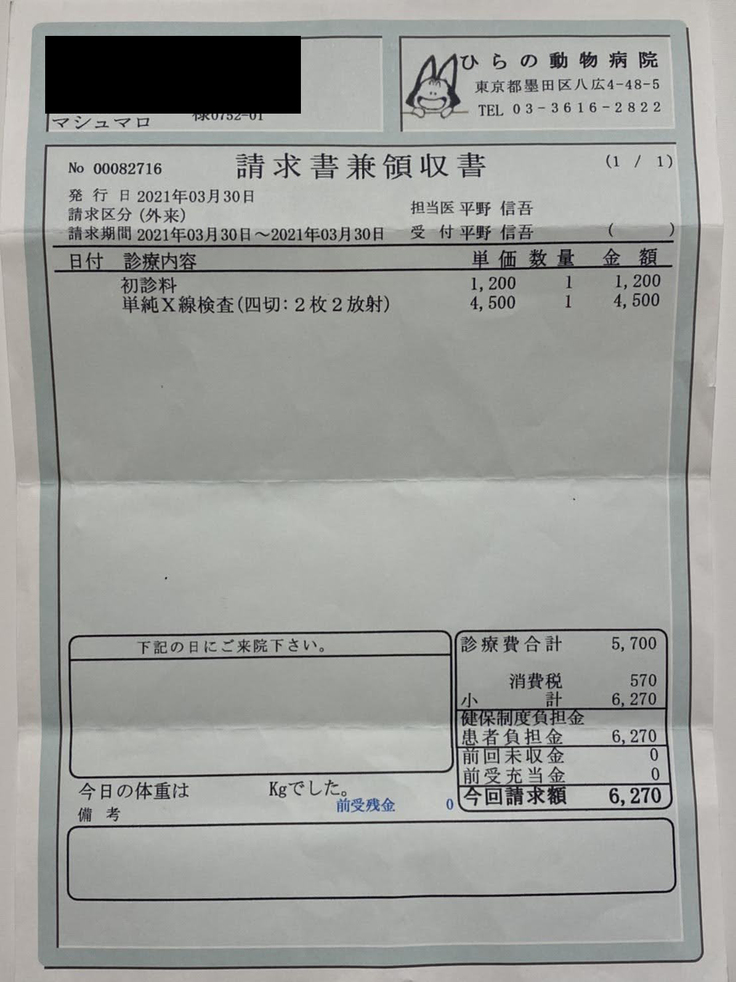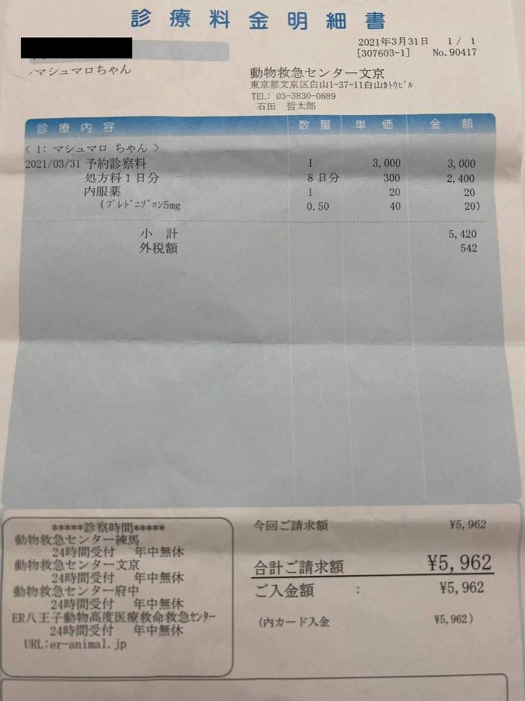 いただいた資金をこれまでのマシュの治療にかかった費用に充てさせていただきます。