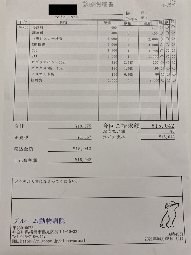 ※こちらの診療明細書は新着情報に添付したため、省略します。