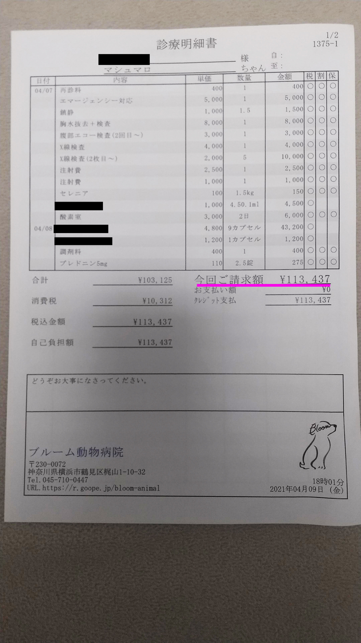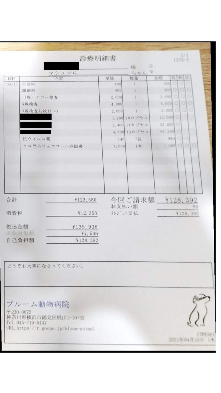 ご支援頂いた資金は、全額マシュの治療費に全て充てたいと思います。