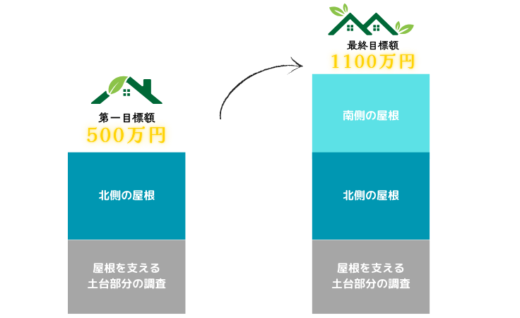 最も緊急度合いが高い北側(縁側)の屋根修繕を実施するには、それを支える南側の屋根を先に修繕する必要があり、総額1100万円ほどの費用が生じると見込まれています。ただ、この費用を小規模事業者で捻出することは容易ではなく、皆様のお力もお借りしたいと考えています。