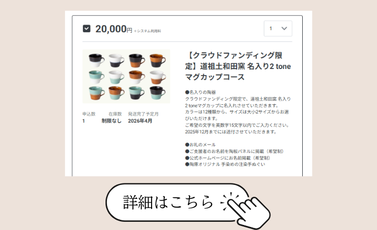 返礼品のご紹介:【クラウドファンディング限定】道祖土和田窯 名入り2toneマグカップコース