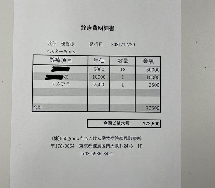 マスターのFIP治療にて、その薬の処方にて100万円使用致します。