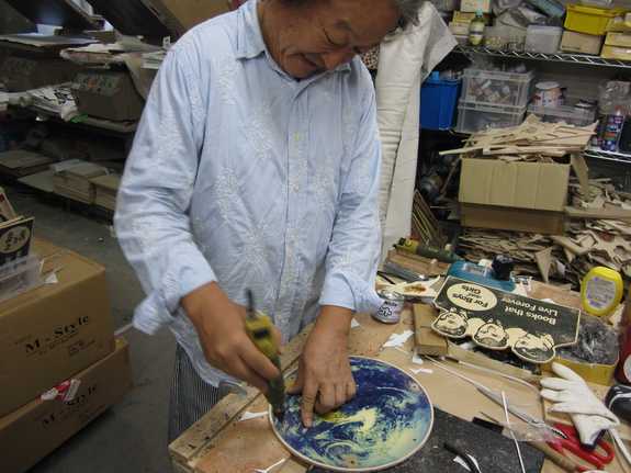 シルクスクリーン工場。工場長へのインタビュー、工場見学の様子