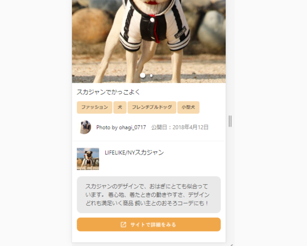 画像と一緒に、お洋服のブランド名やオススメ情報と、