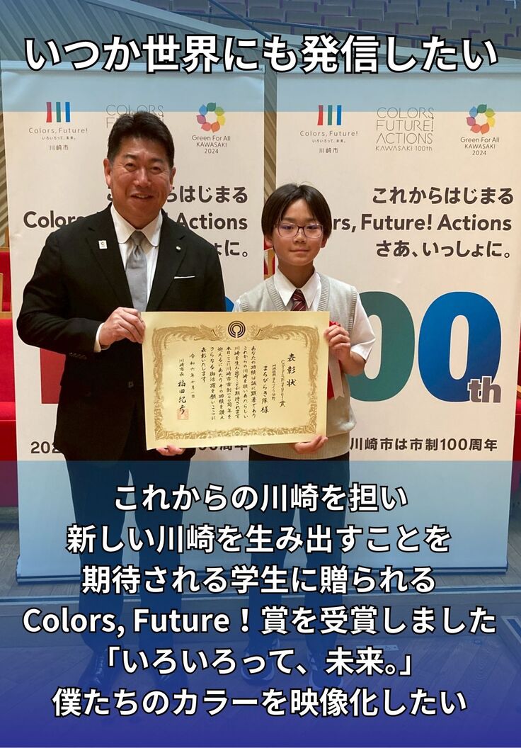 川崎市市制100周年記念「Colors, Future!賞」受賞